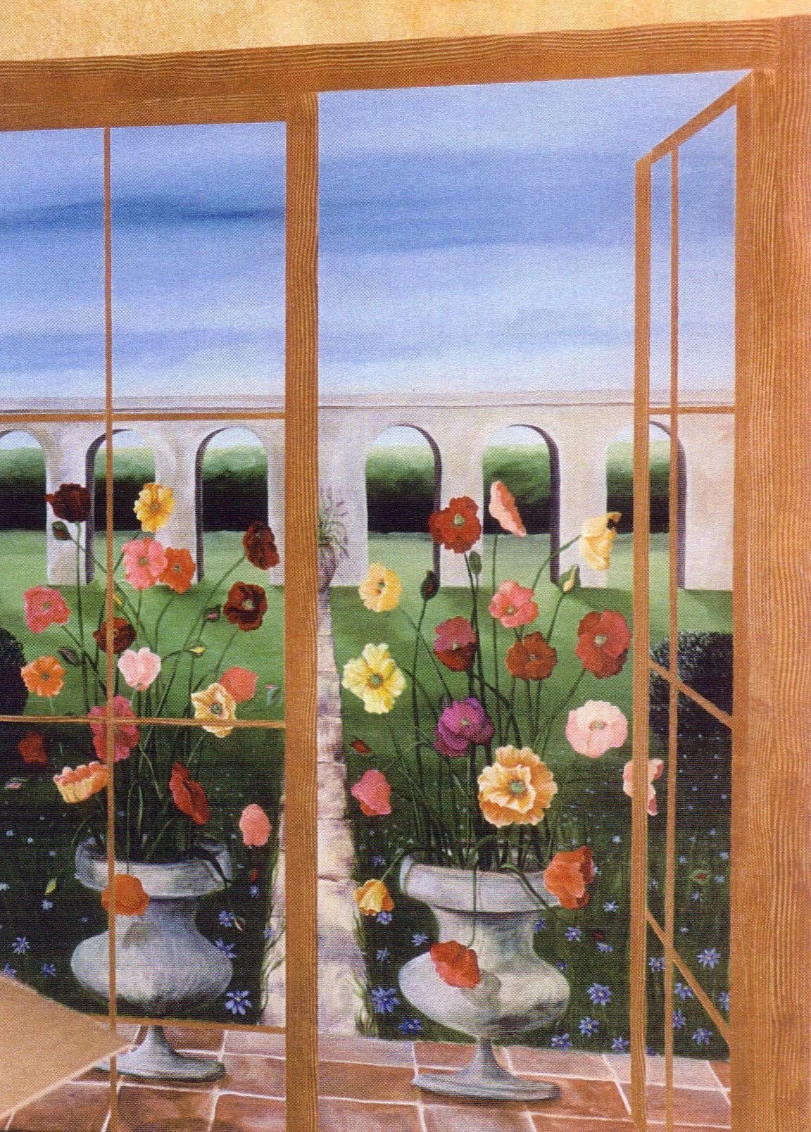 The Murals collection showcases large-scale works that bring art into shared spaces, transforming walls, barns, and interiors into immersive environments. Each piece is a dialogue between place and imagination—whether a vibrant floral scene buzzing with bees, a serene seaside escape, or a nostalgic garden tableau. Through layered color, botanical motifs, and a deep sense of atmosphere, these murals celebrate connection to nature and community. Julie’s murals bridge fine art and environmental storytelling, inviting viewers to experience beauty not as something to observe from afar, but to live within every day.