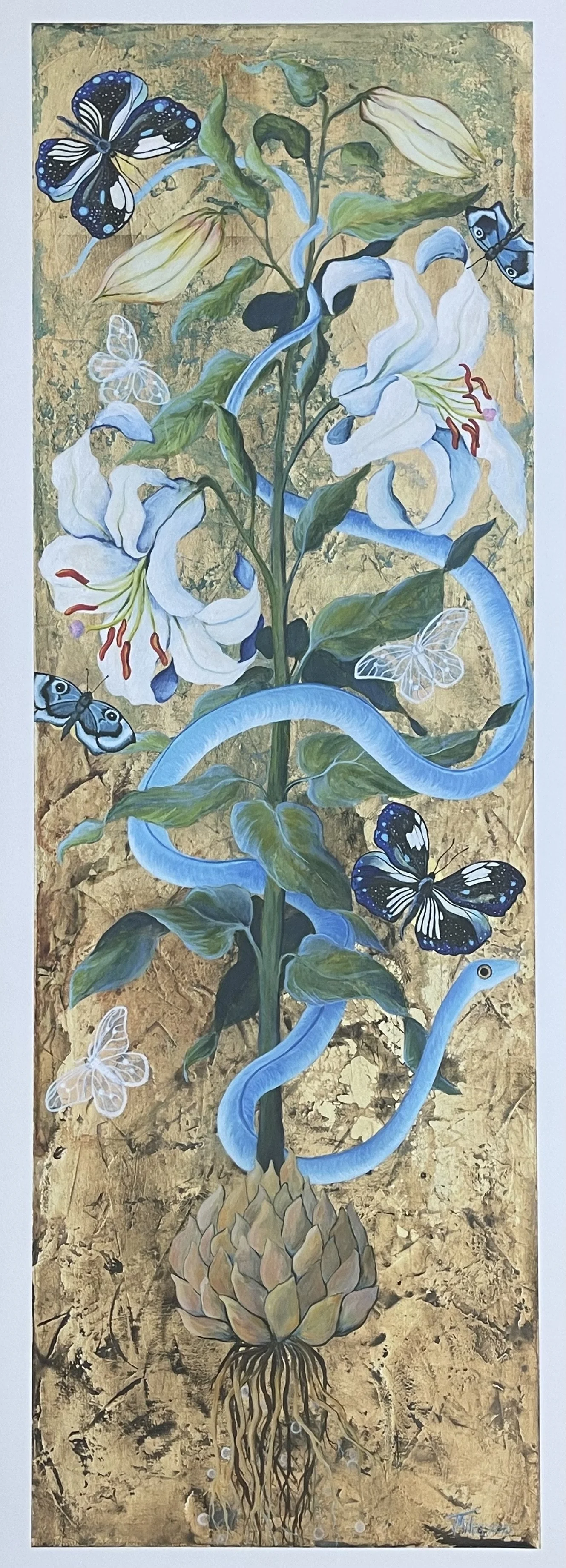 Original paintings and fine art prints are available from Julie Miles Studios. Each piece captures the harmony of nature and imagination—whether through luminous florals, whimsical wildlife, or vibrant pollinators. Prints are offered in varying sizes, allowing collectors to bring a touch of color and story to any space.